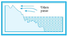 Konduksi, yaitu pemanasan secara kontak atau secara bersinggungan. Molekul-molekul udara yang dekat dengan permukaan bumi akan menjadi panas karena bersinggungan dengan bumi yang menerima panas langsung dari matahari. Molekul-molekul udara yang sudah panas bersinggungan dengan molekul-molekul udara yang belum panas lalu saling memberikan panas sehingga sama-sama panas.