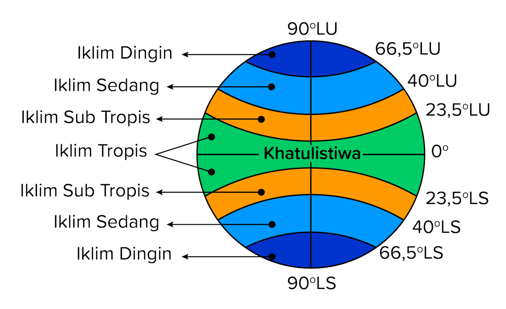 Dasar perhitungan mengadakan pembagian daerah iklim matahari adalah banyaknya sinar matahari yang diterima oleh permukaan bumi. Pembagian daerah iklim matahari didasarkan pada letak lintang di bumi.