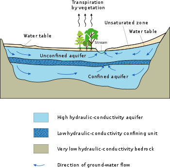 Yaitu aquifer yang bagian bawahnya yang merupakan lapisan kedap air, sedangkan bagian atasnya merupakan material berbutir halus, sehingga pada lapisan penutupnya masih memungkinkan adanya gerakan air.