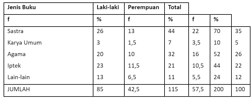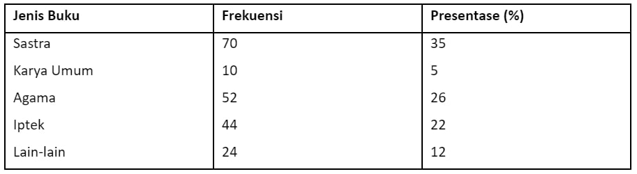 yang ingin memanfaatkan data penelitian tersebut. Contoh tabel frekuensi buku yang sering dibaca siswa ketika diperpustakaan sekolah.