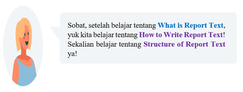 Report text adalah salah satu jenis teks dalam bahasa Inggris yang menjelaskan tentang detail suatu objek. Penjelasan dalam report text merupakan hasil observasi, penelitian, observasi dan kajian terhadap berbagai hal. (Report text is one type of text in English that explains the details of an object. The explanation in the report text is the result of observations, research, observations and studies on various things.)