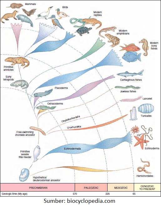 Chordata meliputi sekitar 45.000 jenis hewan yang hidup di hampir semua jenis lingkungan. Terdapat tiga hal yang membedakan filum Chordata dengan filum yang lainnya, yaitu dalam hal perkembangannya.