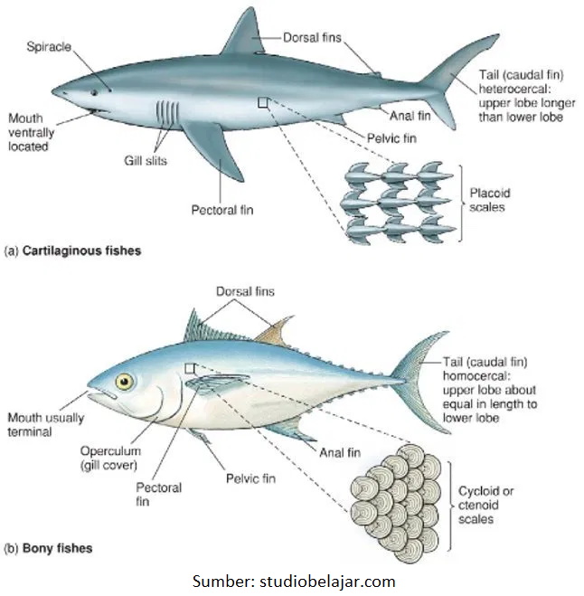 Berdasarkan jenis tulang yang membangun rangka tubuhnya, Pisces (ikan) dikelompokkan menjadi dua kelompok, yaitu ikan bertulang rawan (Chondrichthyes) dan ikan bertulang sejati (Osteichthyes).