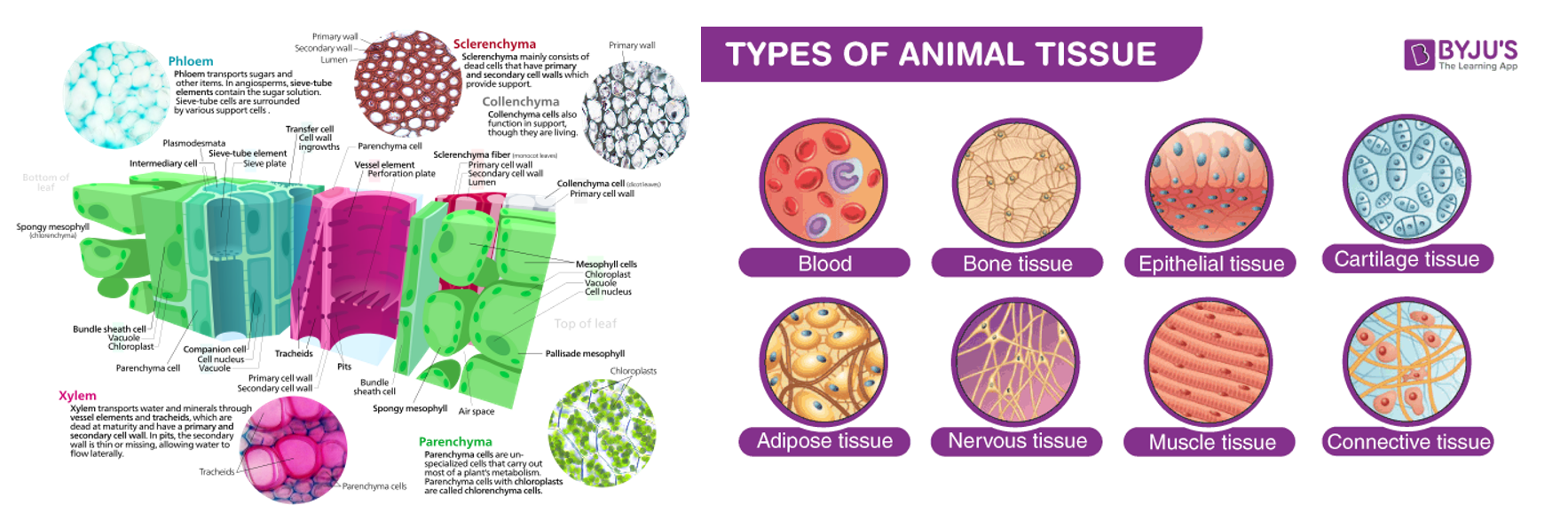 - Berbagai macam jaringan (jaringan epitel, jaringan ikat, jaringan epidermis dll) dan fungsinya.