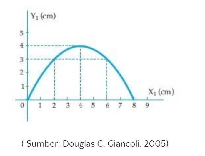 Persamaan gerak pada sumbu x adalah persamaan gerak lurus beraturan. Persaman gerak pada sumbu y adalah persamaan gerak lurus berubah beraturan diperlambat. Ternyata gerak hasil perpaduannya berupa gerak parabola.