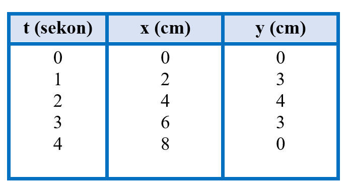Untuk mengetahui bentuk lintasan hasil perpaduannya terlebih dahulu kita lihat isi tabel di bawah ini!