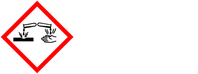 Bahan kimia dengan label ini dapat menyebabkan karat pada logam dan bahan korosif yang menyebabkan kulit terbakar.