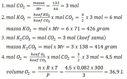 KO2 direaksikan dengan 132 gram CO2, menurut reaksi: