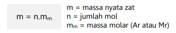 Dengan menggunakan massa molar dan konsep mol, kita dapat mencari massa nyata suatu atom/senyawa, dapat dirumuskan: