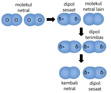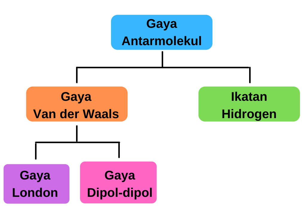 Selain itu, antar molekul yang berdekatan juga dapat mengalami suatu gaya tarik menarik, macam-macam gaya antar molekul tersebut adalah sebagai berikut: