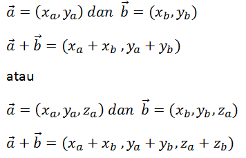 Dalam menghitung penjumlahan vektor jika diketahui koordinatnya, maka :