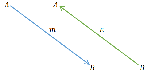 Jika diketahui m merupakan vektor dari A ke B, sedangkan n merupakan vektor dari B ke A, maka: