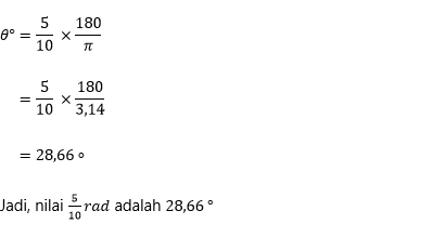 Untuk mengubah radian ke dalam derajat maka menggunakan rumus
