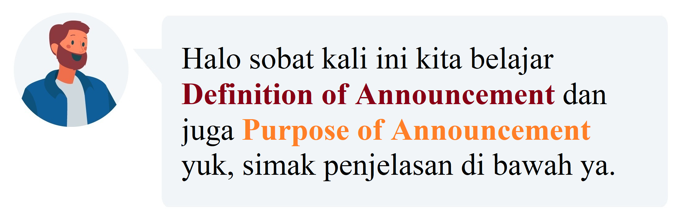 Tenang Sobat! Itu cuma contoh aja kok, semoga nggak naik beneran ya sobat harga skincarenya! Nahh, Sobat Pintar tau nggak teks seperti itu disebut apa? Yup! Pengumuman. Sobat Pintar pasti pernah kan liat pengumuman di mading, di sosial media, ataupun dari speaker sekolah. Dalam bahasa Inggris, pengumuman disebut Announcement.