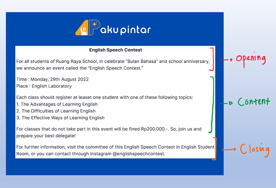 Materi Bahasa Inggris (Wajib) - Announcement Kelas 10 - Belajar Pintar