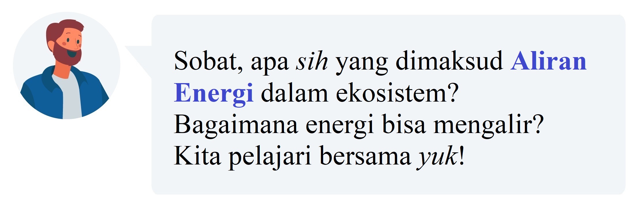 Aliran energi merupakan proses perpindahan energi dari satu organisme ke organisme lain dalam suatu rantai makanan. Energi masuk ke ekosistem melalui produsen atau tumbuhan hijau yang melakukan fotosintesis. Selanjutnya, energi tersebut ditransfer melalui rantai makanan, dimulai dari produsen ke konsumen primer, konsumen sekunder, dan seterusnya.