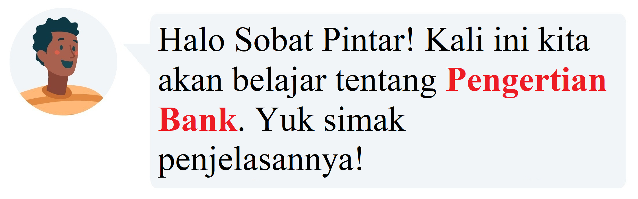 Secara etimologis, pengertian bank berasal dari kata "Banco" berarti bangku. Bangku yang dimaksud merujuk pada meja untuk menunjang aktivitas perbankan dalam melayani nasabah. Istilah bangku di kemudian hari terus berkembang hingga istilah bank digunakan dalam kegiatan pelayanan finansial. Secara terminologis, pengertian bank adalah lembaga keuangan suatu negara yang didirikan dengan kewenangan menghimpun, mengelola, dan mengatur seluruh hal berkaitan dengan keuangan. Harapannya, bank mampu memaksimalkan pemanfaatan keuangan untuk menggerakkan ekonomi dan meningkatkan kesejahteraan masyarakat. Setiap negara terdapat bank sentral sebagai pusat dan acuan bank-bank umum. Di Indonesia, Bank Indonesia (BI) adalah bank sentral. Bank Indonesia diatur oleh Undang-Undang RI Nomor 10 Tahun 1998 tentang Perbankan.