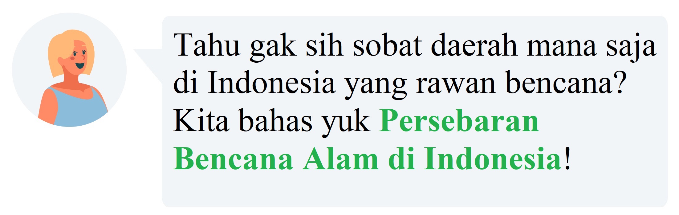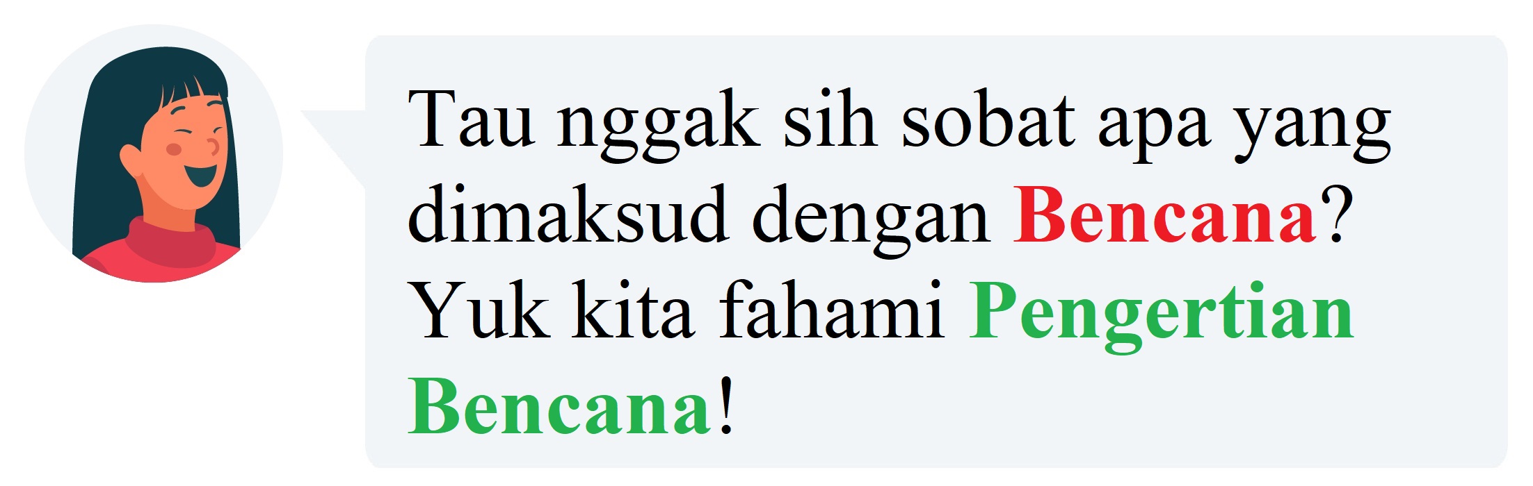 Wilayah Negara Kesatuan Republik Indonesia secara geografis terletak di antara Benua Asia dan Benua Australia, Samudra Pasifik dan Samudra Hindia, pertemuan Pegunungan Sirkum Pasifik dan Sirkum Mediterania serta pertemuan tiga lempeng aktif yaitu Lempeng Pasifik, Indo-Australia dan Eurasia. Posisi inilah yang menyebabkan wilayah Indonesia berpotensi tinggi terjadi bencana. Tahukah sobat apa yang dimaksud dengan bencana? dan apa saja jenis-jenis bencana? Yuk kita bahas!
