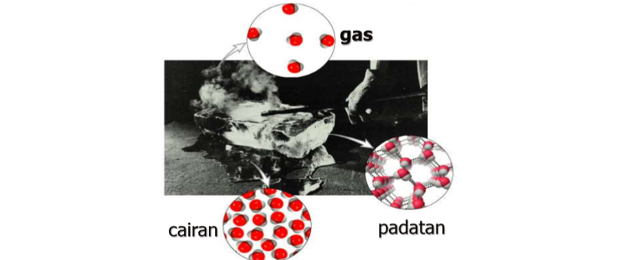 - Molekul tersusun lebih rapat dibandingkan keadaan gas