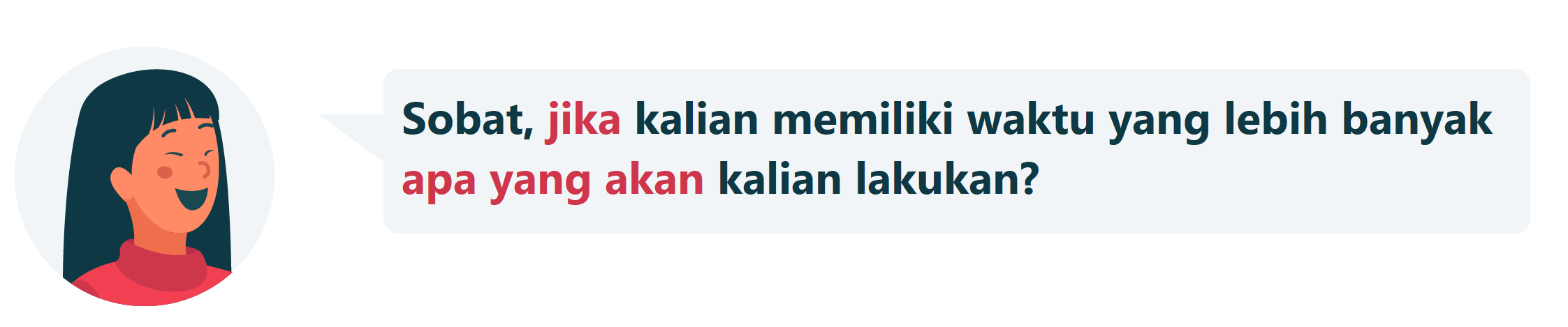 Pertanyaan tersebut dan jawaban dari kalian, jika digabungkan, maka menjadi sebuah kalimat yang menggunakan Conditionals.