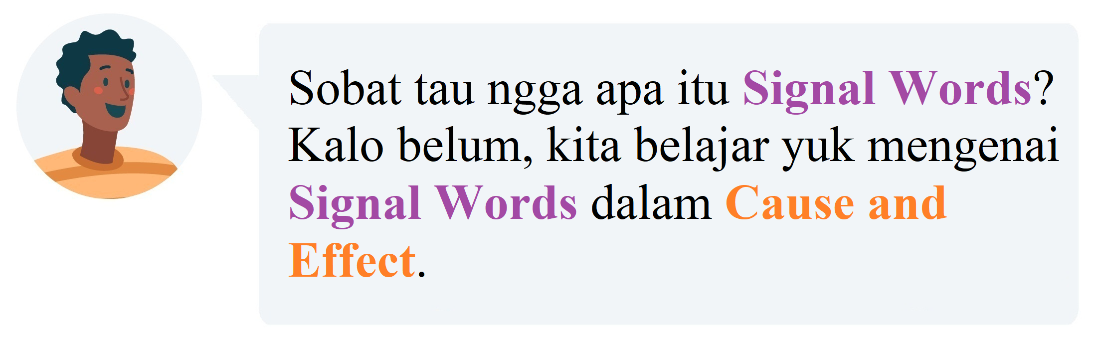 Diantara Sobat Pintar, ada yang sudah tahu belum beberapa Signal Words yang dapat digunakan untuk menunjukkan suatu sebab dari peristiwa yang terjadi?