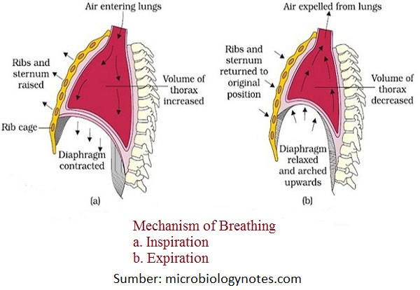 Sobat Pintar, perhatikanlah mekanisme pernapasan berikut ini!