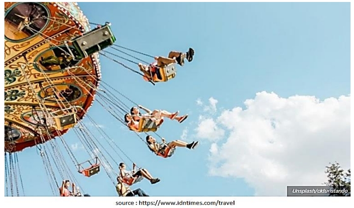 Korsel gantung dikatakan melakukan gerak rotasi karena lintasannya berbentuk lingkaran dan ada sumbu sebagai pusatnya. Nah sobat pintar, wahana korsel gantung tersebut menerapkan konsep kesetimbangan loh!