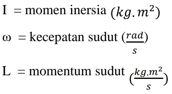 Anda telah mengenal besaran momentum linear yang dinyatakan oleh p = m.v, pada gerak rotasi, yang analogi dengan momentum linear adalah momentum sudut. Seperti momentum linear, momentum sudut juga merupakan suatu besaran vektor. Arah momentum sudut dari suatu benda yang berputar diberikan oleh aturan tangan kanan. Pada keempat jari yang dirapatkan sesuai dengan arah gerak rotasi, maka arah tunjuk ibu jari menyatakan arah vektor momentum sudut. Momentum sudut dirumuskan: