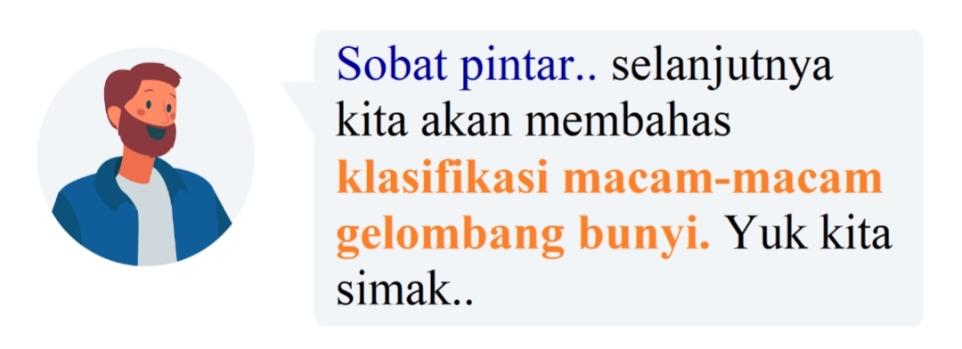 Sobat pintar, tahukah kalian bahwa terdapat macam-macam jenis dari gelombang bunyi? Gelombang bunyi dapat kita klasifikasikan menjadi tiga macam yaitu