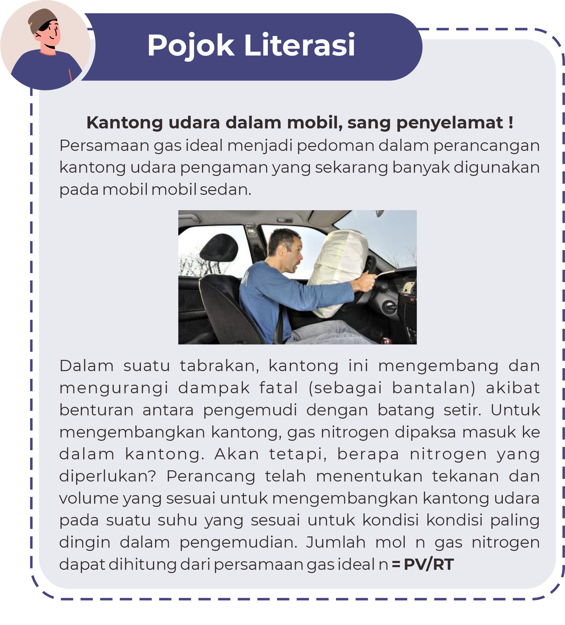 Pernahkah sobat melihat gelembung-gelembung ketika minuman bersoda dituangkan? Bagaimana bentuk dan jumlahnya? Gelembung-gelembung minuman bersoda merupakan inti molekul-molekul. Gelembung-gelembung minuman bersoda akan berjumlah banyak dan volumenya semakin membesar saat dituangkan. Hal ini dikarenakan adanya pengaruh tekanan dan jumlah mol dalam minuman tersebut. Fenomena ini merupakan contoh keseharian dari teori kinetik gas.