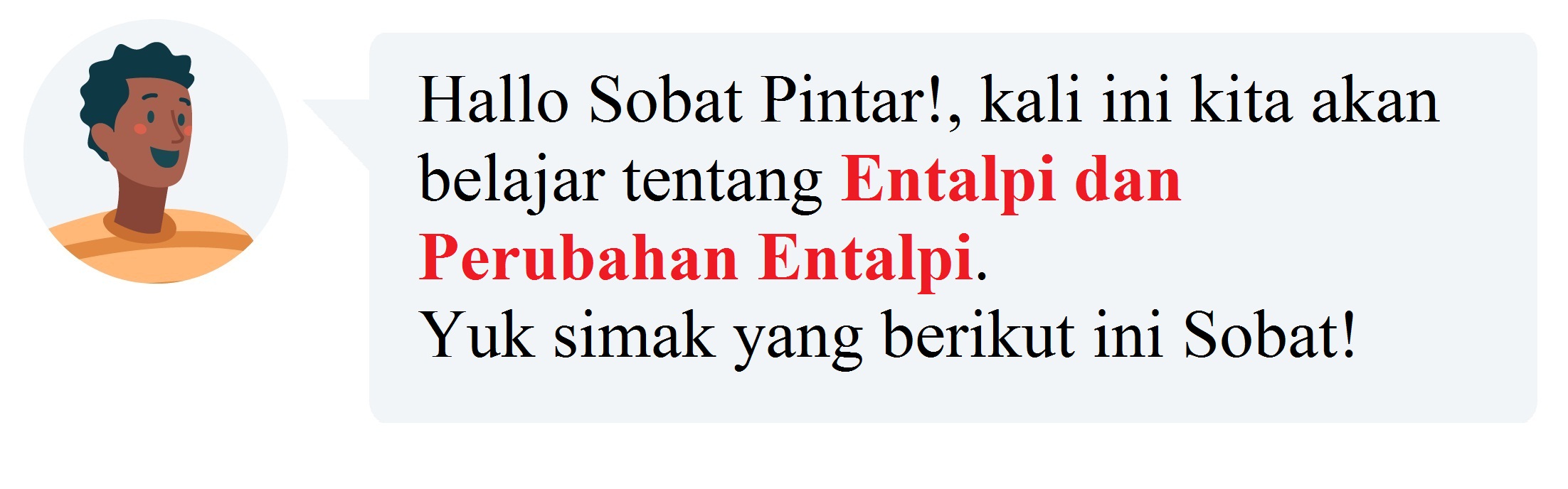 Setiap zat kimia memiliki energi. Energi ini tersimpan dalam bentuk energi potensial dan dikenal sebagai energi kimia. Besarnya energi yang dimiliki suatu zat disebut dengan entalpi dan dinotasikan dengan H (Heat Content). Harga entalpi suatu zat/sistem tidak dapat ditentukan, yang dapat ditentukan adalah perubahan entalpi yang menyertai suatu proses (proses kimia atau fisika).
