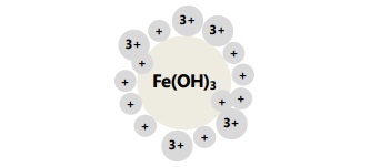 - Sol Fe(OH)3 bermuatan positif dan mengadsorpsi ion H+ dan Fe3+.