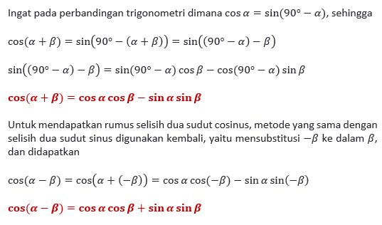 RUMUS COSINUS JUMLAH DAN SELISIH DUA SUDUT