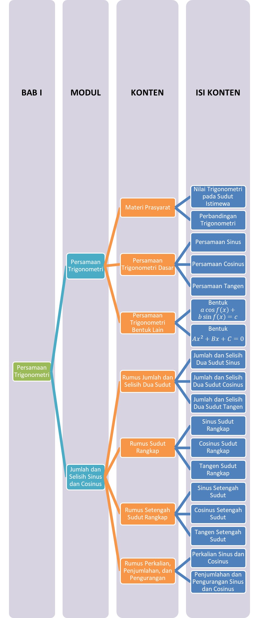 Sebelum Sobat Pintar Belajar Mengenai Persamaan Trigonometri, ada baiknya sobat pintar lihat dulu peta konsep berikut agar sobat pintar tahu apa saja yang akan dipelajari.