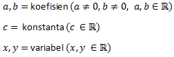Bentuk umum dari pertidaksamaan linear dua variabel yaitu :