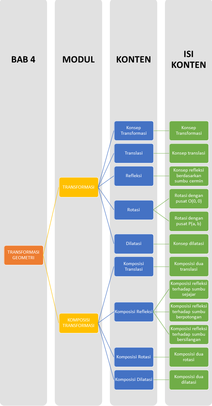 Berbeda dengan materi sebelumnya yang hanya melewati satu kali transformasi, pada materi kali ini kita akan belajar tentang komposisi transformasi, yaitu hasil dari perubahan letak atau ukuran yang diubah kembali letak atau ukurannya. Komposisi transformasi dilambangkan dengan simbol “o” yang terletak diantara dua transformasi.