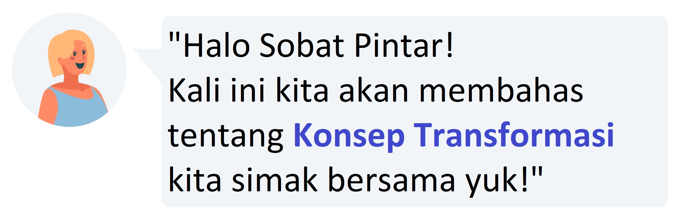 Transformasi geometri adalah bagian dari geometri yang membahas mengenai perubahan letak maupun bentuk penyajian dari sebuah titik, garis, ataupun bidang. Perlu sobat pintar ketahui, bahwa dalam transformasi terdiri atas: