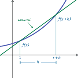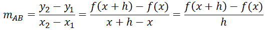 Gradien dari garis sekan yang melalui titik A (x,f(x)) dan titik B(x+h,f(x+h)) dapat dituliskan sebagai berikut: