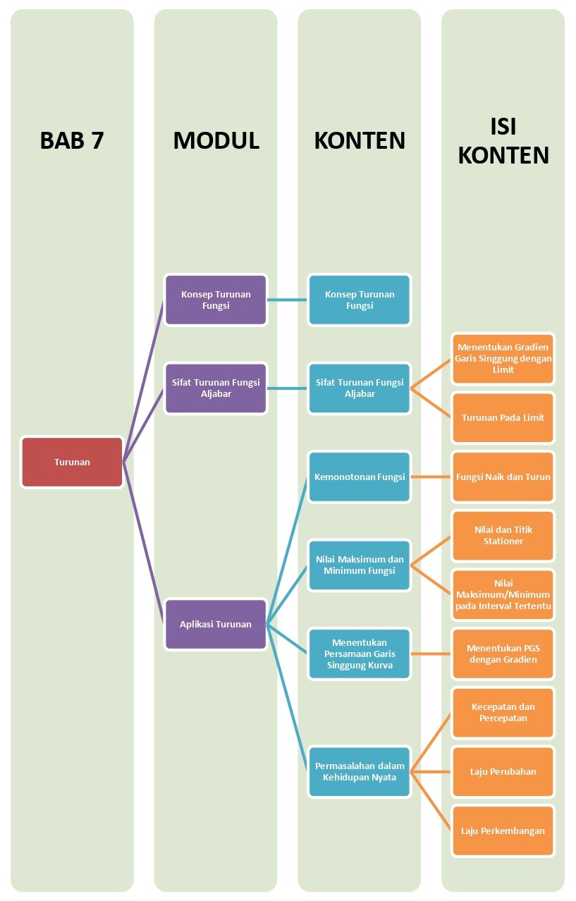 Sebelum kita belajar mengenai materi TURUNAN, coba kalian perhatikan Peta Belajar Bersama di bawah ini dulu ya!