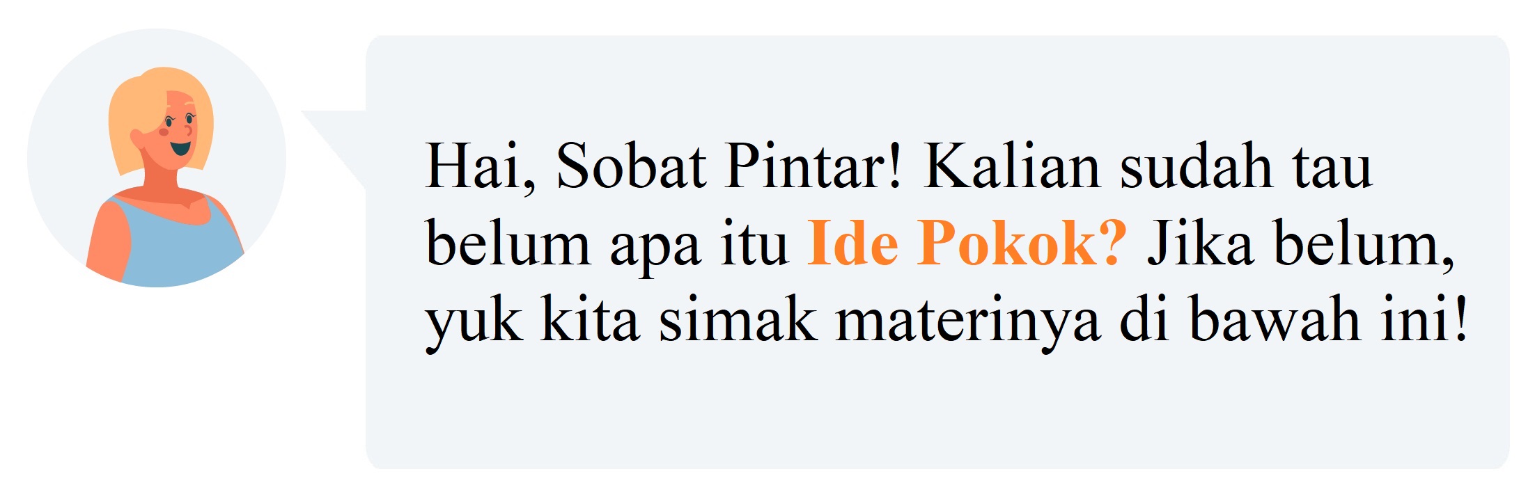 Ide pokok memiliki beberapa nama lain, yaitu pikiran utama, gagasan utama, dan pokok pikiran. Akan tetapi, semua memiliki makna yang sama. Perlu sobat ketahui pula, suatu paragraf hanya memiliki satu ide pokok. Ide pokok tersebut terdapat dalam kalimat utama, lalu dipaparkan pada kalimat-kalimat penjelas dalam paragraf. Untuk menentukan ide pokok paragraf, sobat perlu membaca teksnya dengan teliti kemudian tentukan mana kalimat yang dijelaskan dan mana kalimat yang fungsinya menjelaskan kalimat lain. Kalimat yang dijelaskan oleh kalimat lain disebut dengan kalimat utama yang di dalamnya memuat ide pokok.