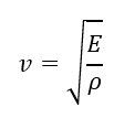- Cepat rambat bunyi pada zat padat dihitung dengan akar perbandingan modulus elastisitas (E) terhadap massa jenis (ro) bahan tersebut.