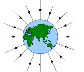 Kuat medan gravitasi (g) merupakan besaran vektor, yaitu medan yang setiap titiknya memiliki nilai dan arah. Garis-garis medan gravitasi (g) merupakan garis-garis bersambungan (kontinu) yang selalu mengarah menuju ke massa sumber medan gravitasi.