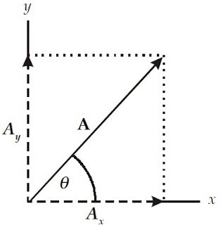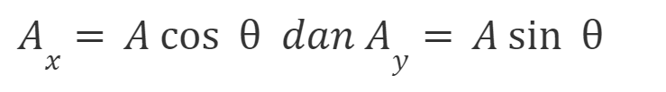 Gambar diatas memperlihatkan sebuah vektor A yang diuraikan menjadi dua buah vektor komponen, masing-masing berada pada sumbu-x dan sumbu-y. Ax adalah komponen vektor A pada sumbu-x dan Ay adalah komponen vektor A pada sumbu-y. Besar setiap komponen vektor A dapat ditulis sebagai berikut.