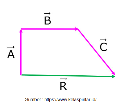 Sobat Pintar, dalam beberapa kasus, seringkali kalian menjumlahkan beberapa vektor yang lebih dari dua buah. Secara grafis, metode yang digunakan adalah metode poligon, seperti yang telah disinggung sebelumnya. Akan tetapi, bagaimanakah cara menentukan besar dan arah vektor resultannya?
