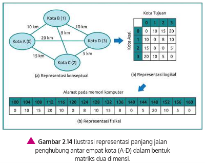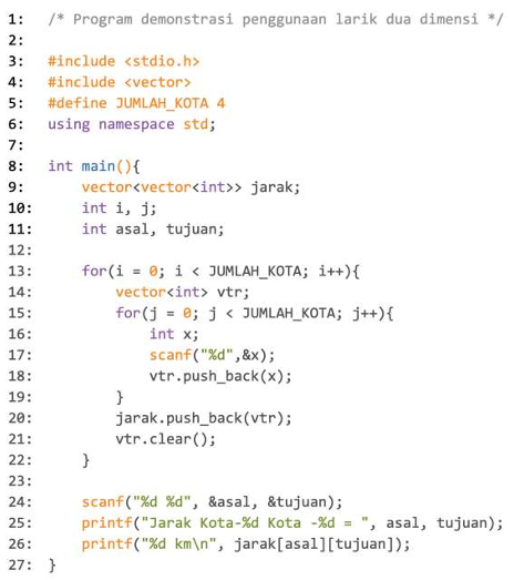Berikut contoh bahasa pemrograman untuk membuat larik dua dimensi: