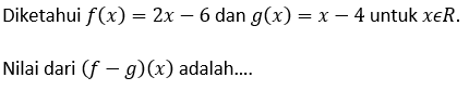 Jadi, nilai (f-g)(x) adalah x-2