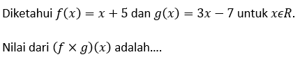 Jadi, nilai (f×g)(x) adalah 3x2+8x-35
