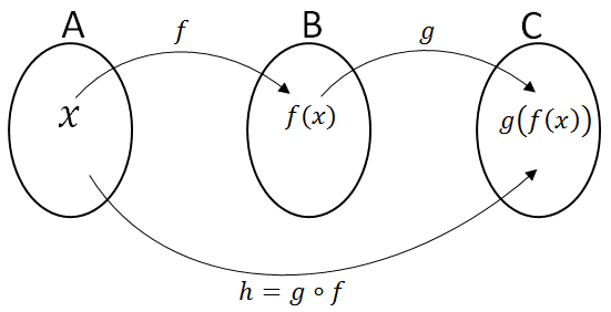 Jika f:A -> B dan g:B -> C, maka h:A -> C atau h: x -> g(f(x))