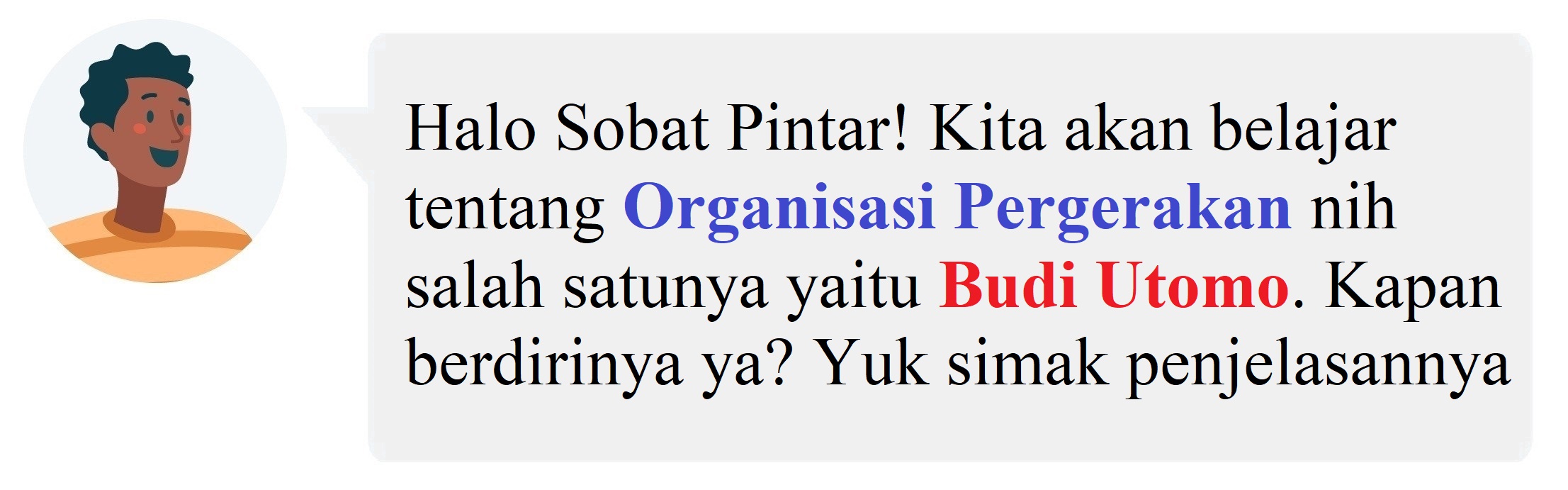 Lahirnya Budi Utomo tidak dapat dilepaskan dari gagasan dr. Wahidin Sudirohusodo mengenai perlunya memperluas dan meningkatkan pendidikan bagi bangsa Indonesia. Pada akhir tahun 1907, Wahidin bertemu dengan Sutomo, pelajar STOVIA di Batavia. Pertemuan antara Wahidin dan Sutomo tersebut berhasil mendorong didirikannya organisasi yang diberi nama Budi Utomo pada hari Rabu tanggal 20 Mei 1908 di Batavia dan Sutomo ditunjuk sebagai ketuanya. Oleh karena itu, pada tanggal 20 Mei 1908 dijadikan sebagai hari Kebangkitan Nasional.