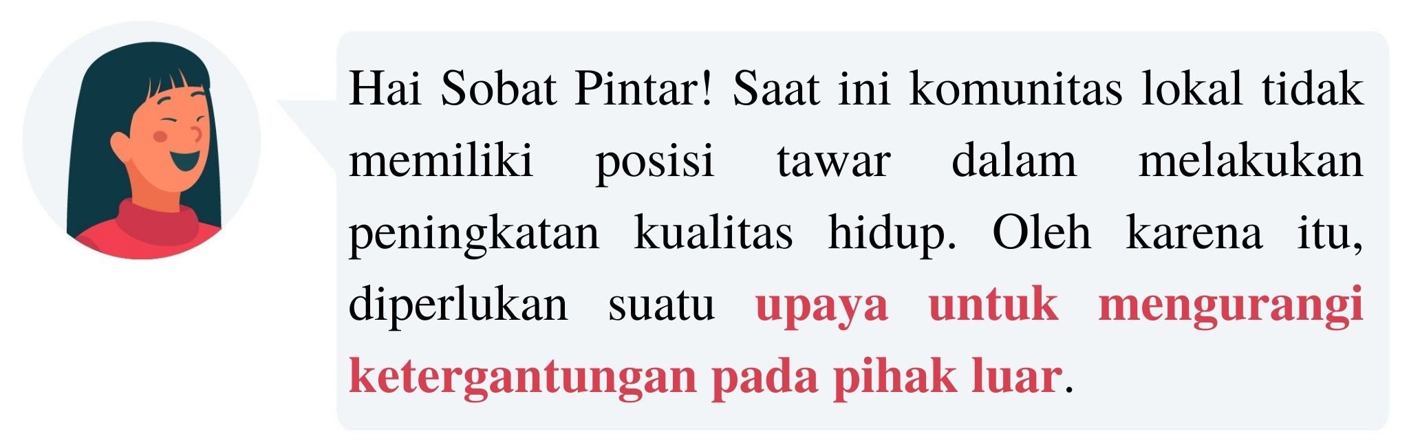Agar relasi antarkomunitas lokal dapat memperkuat posisi tawar, diperlukan hal sebagai berikut: